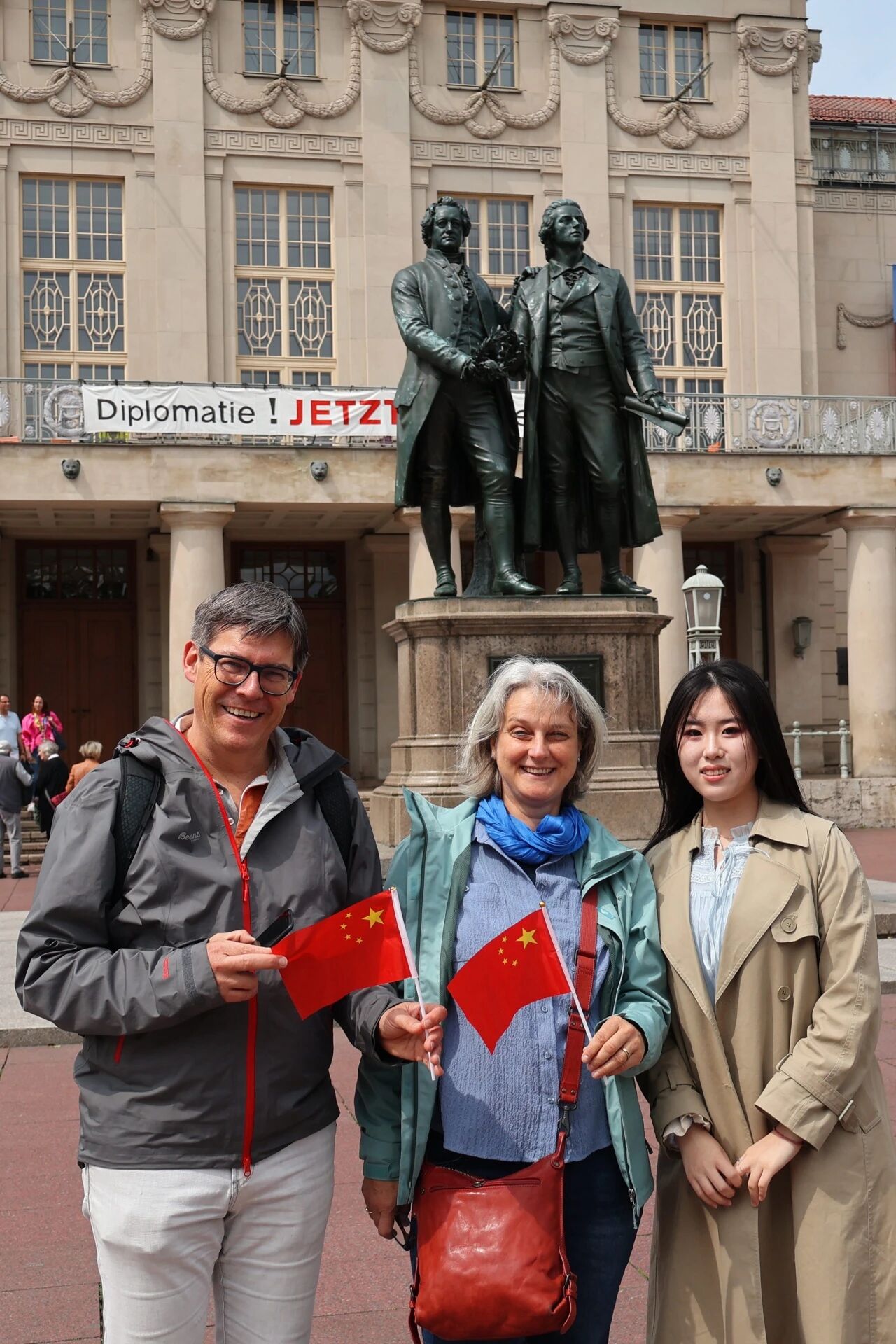 当我们手持国旗,尝试邀请德国友人与国旗合影时,大家的眼中皆是友善的光芒。无论是牵着孩子的年轻夫妇、准备参观博物馆的游客,还是匆匆赶路的学生,无论是老年人还是年轻人,都欣然整理衣襟,用手精心托举着五星红旗,脸上洋溢着真诚的笑容。站在异国的阳光下,看着手机里的照片,一种难以言喻的自豪感在心底涌动。这些合影不是简单的纪念,而是 “寻文化之脉” 的足迹,是 “传信仰之火” 的微光。于我们而言,这更是一次珍贵的文化交流体验。