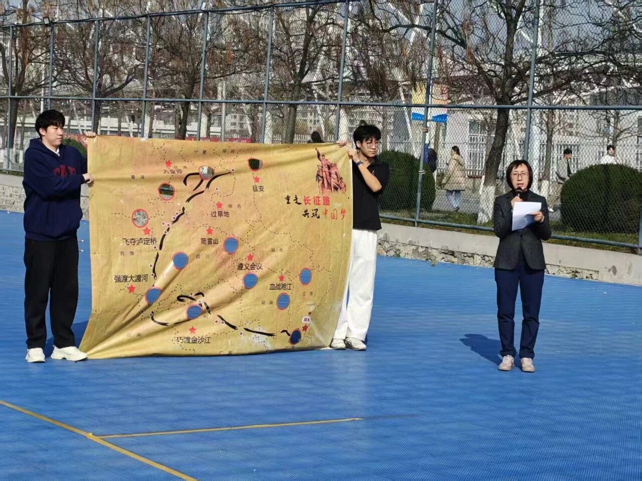 为深入学习贯彻党的红色历史,传承和弘扬伟大长征精神,增强师生党员的凝聚力与使命感,11月12日中午12点50分,德语学院党总支在校篮球场一层轮滑场组织了“重走长征路”主题素质拓展活动。