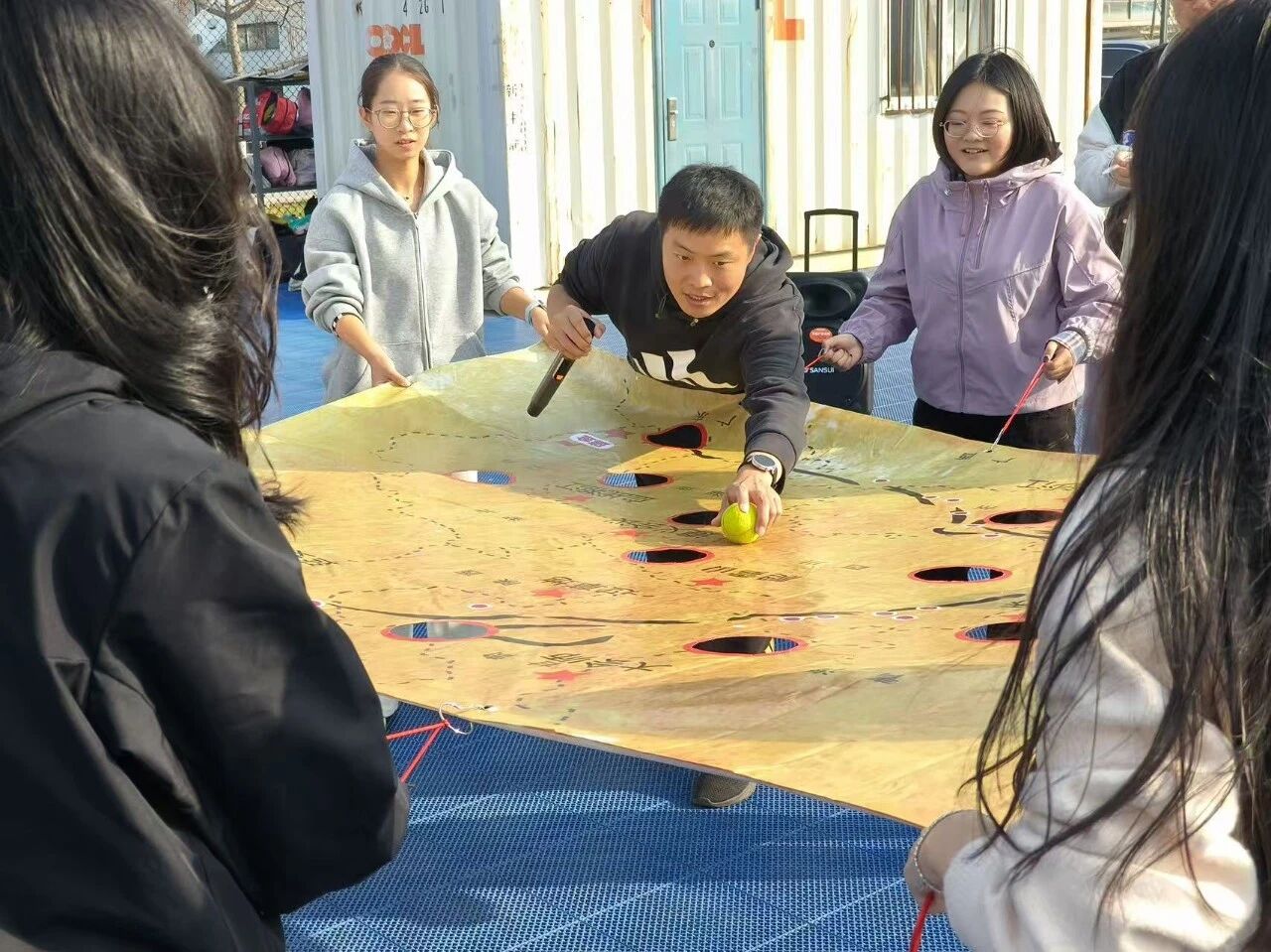 在“重走长征路”环节,队员们手持地图,模拟红军行军路线,操控网球在地图上快速移动,感受红军翻山越岭、长途跋涉的坚韧;“四渡赤水”任务中,队员们奋勇争先,体会红军机动灵活的战略战术;“雷区突围”则考验着队员们团队协作与团队信任,大家相互配合、彼此支持,成功突破“雷区”,取回水源;最后,在“胜利会师”环节,队员们默契配合,步调一致,重温长征胜利的喜悦与荣光。