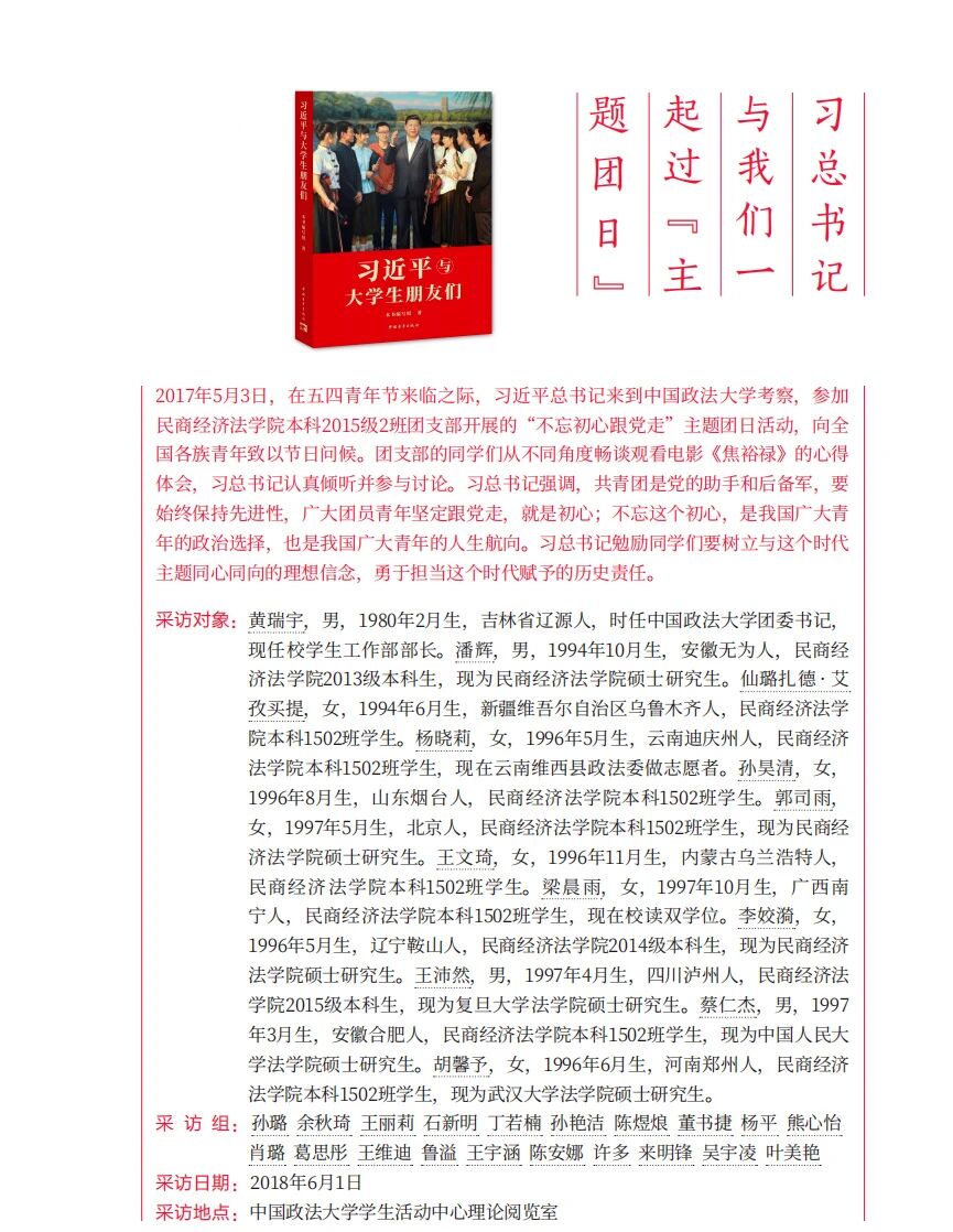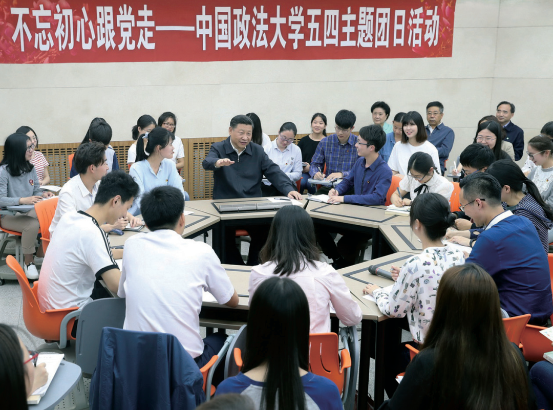 ※ 2017年5月3日,习近平总书记参加中国政法大学民商经济法学院本科2015级2班团支部“不忘初心跟党走”主题团日活动。