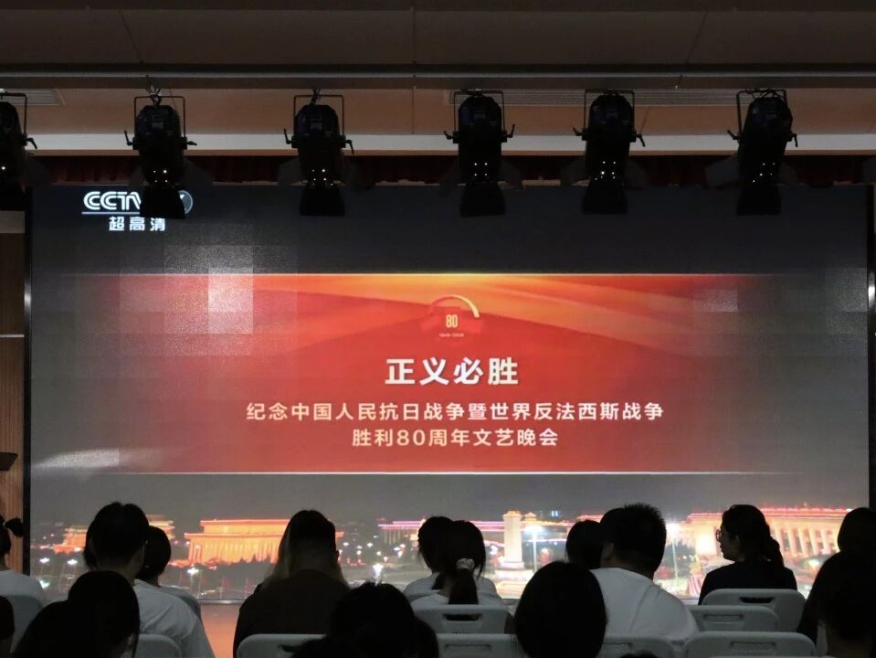9月9日18时30分,德语学院于大学生活动中心组织观看纪念中国人民抗日战争暨世界反法西斯战争胜利80周年《正义必胜》。