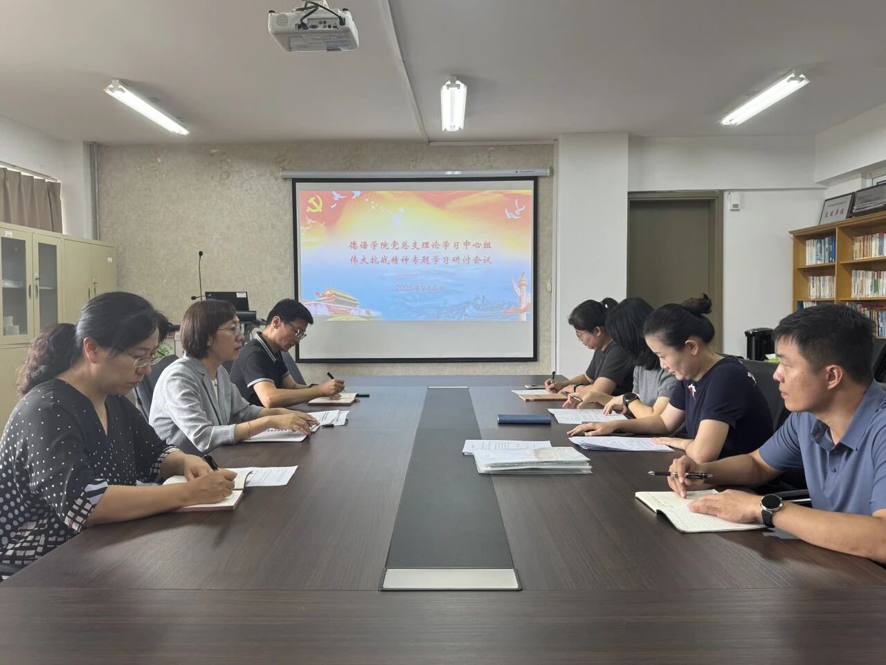 9月8日上午,德语学院党总支理论学习中心组召开专题学习会议,专题学习研讨习近平总书记在纪念中国人民抗日战争暨世界反法西斯战争胜利80周年大会上的重要讲话精神。党总支书记蔡芸主持会议,学院党总支理论学习中心组成员参加会议。
