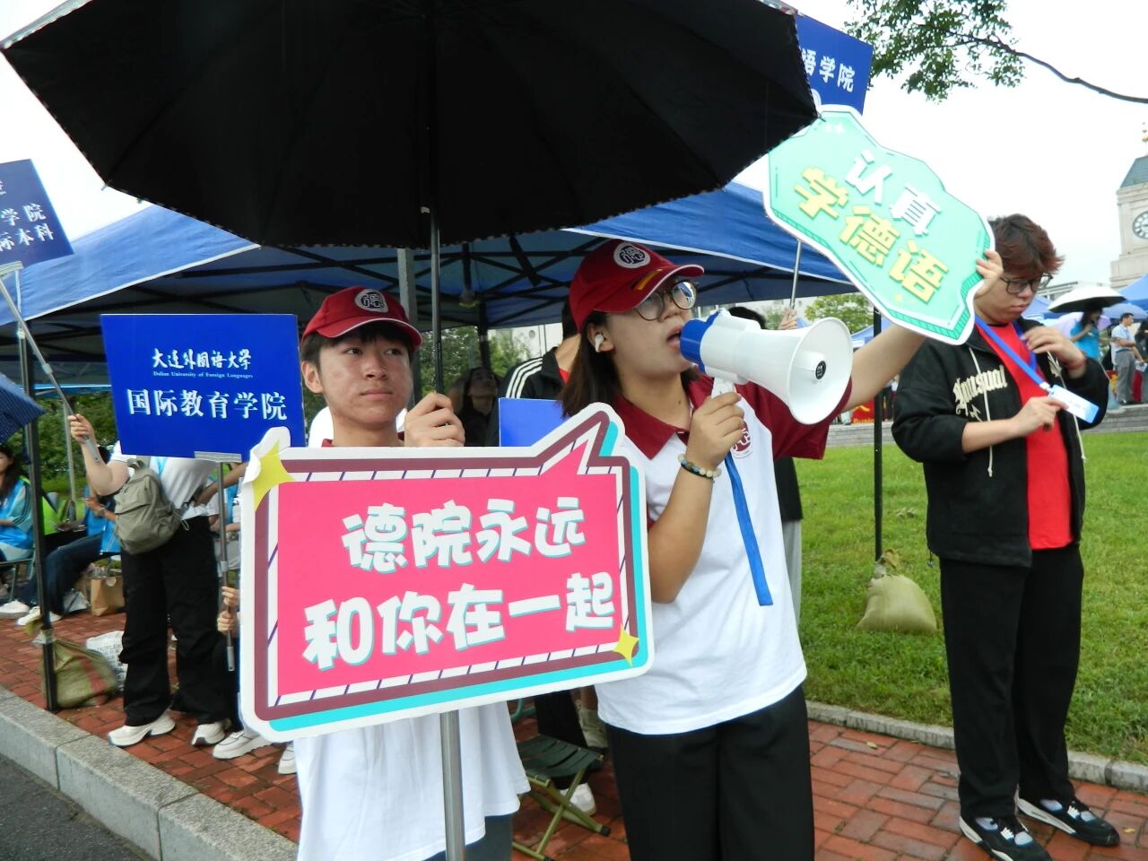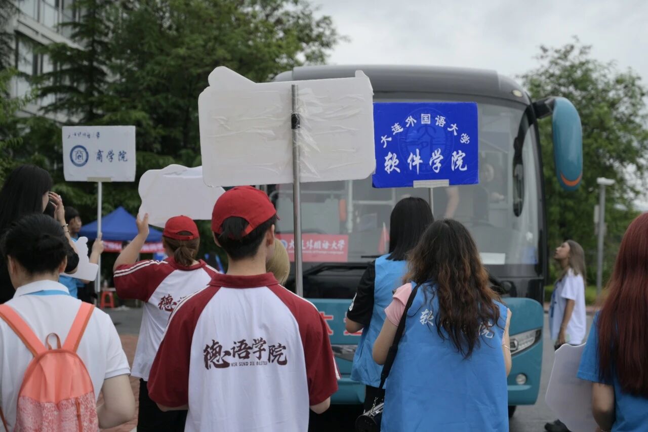 他们提前到岗,秩序井然,满怀热情地挥舞着德院引导牌,迎接每一位新生。
