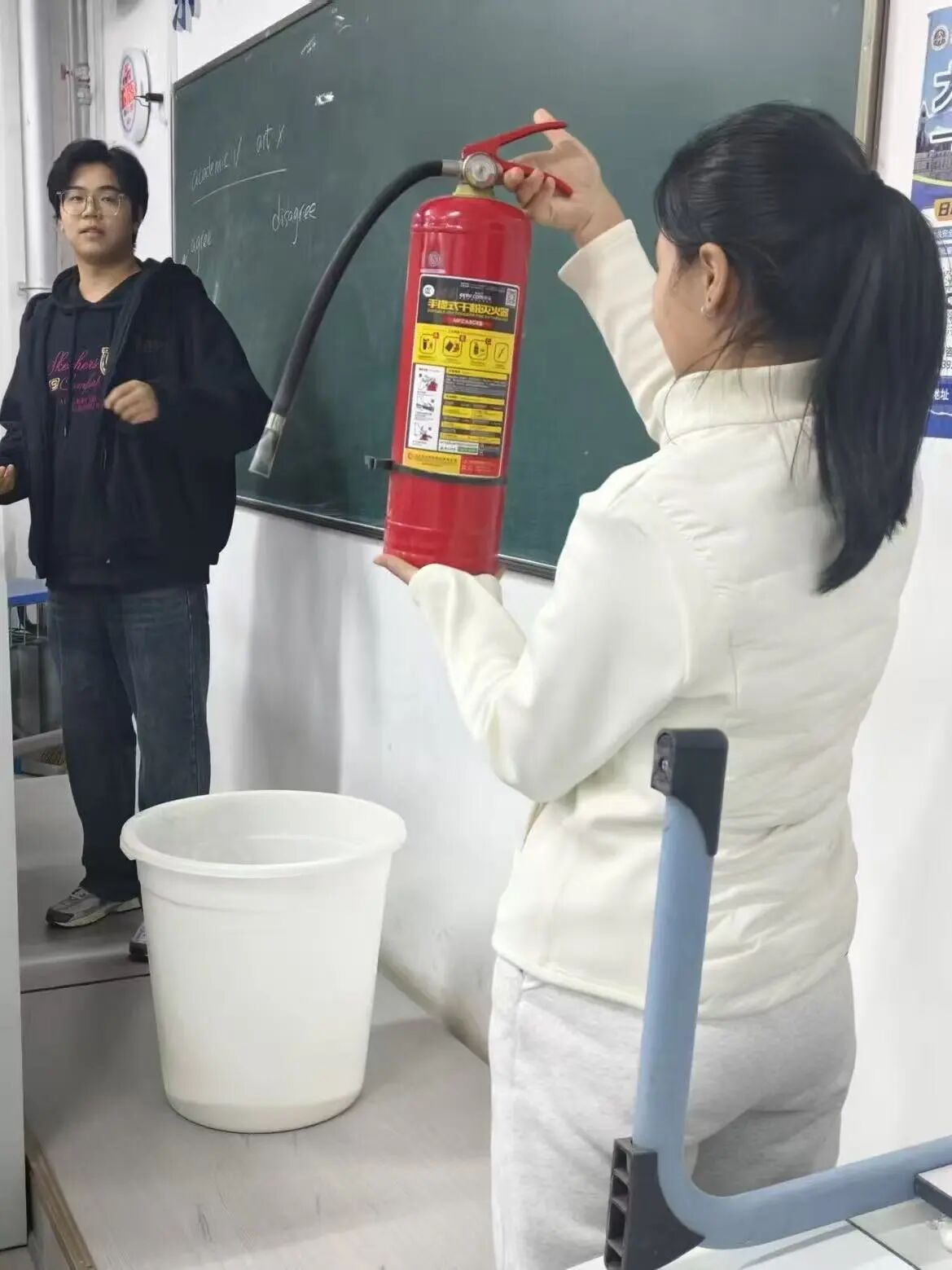 演练前,学院统一开展消防安全微课培训,重点讲解校园常见火灾类型及预防措施、突发火情应急处置流程(含寝室分工)、逃生自救方法以及消防栓与灭火器的规范使用。同学们认真听讲,积极配合。