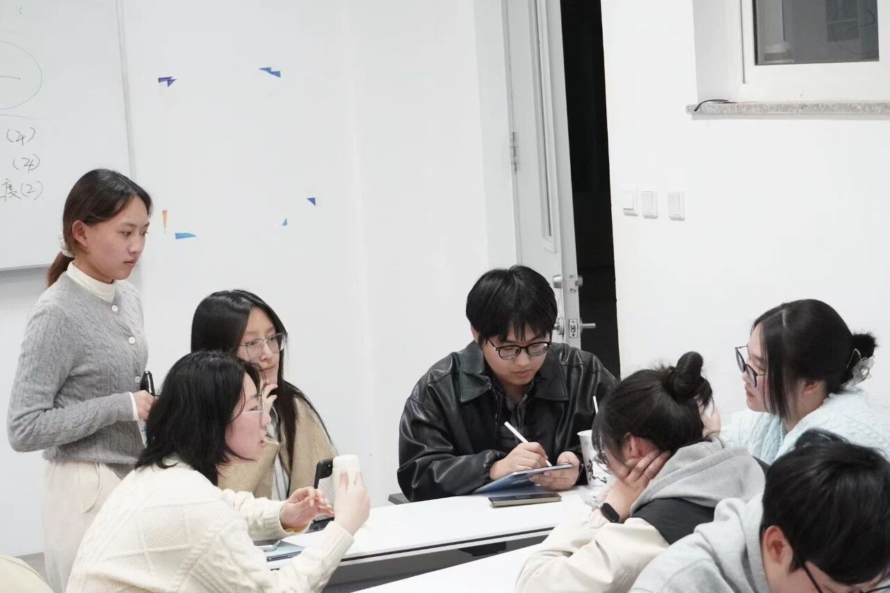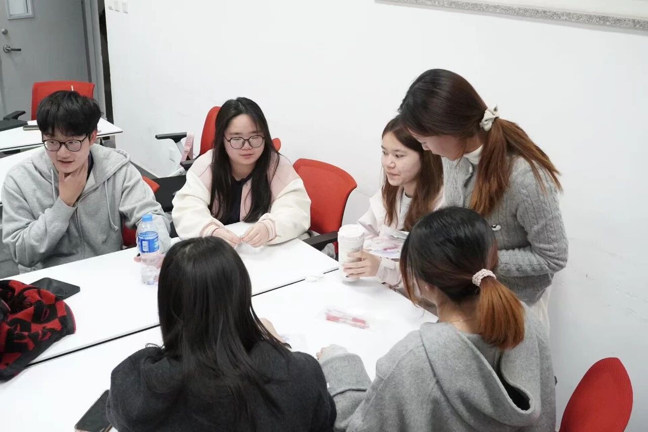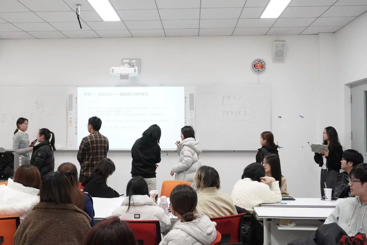 各小组分别化身为中德两家企业,同学们分工扮演中方与德方企业代表,中方代表提出诉求,德方代表给出解决方案,上演跨国商务交谈。最后每组推出一名代表,作3分钟总结。同学们在该活动中锻炼了口语能力,更加拓展了自己的知识面,理解了中德贸易合作逻辑。