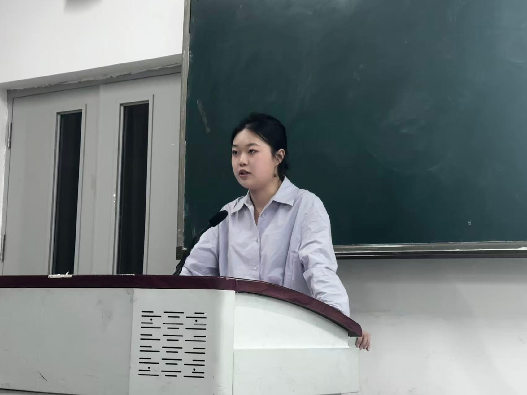 邓紫炫同学首先介绍了各类大创项目的要求与特点,并对近三年德语学院的国家级、省级立项项目做了分类总结,提炼出相关经验和要点,直观呈现大创比赛的内核。其次,她强调了大创项目是一个长周期项目,做好前期的思考准备和持续的补充修正十分重要。最后,她在选题、立项、论文撰写等方面给出了具体建议,为同学们指点方向。