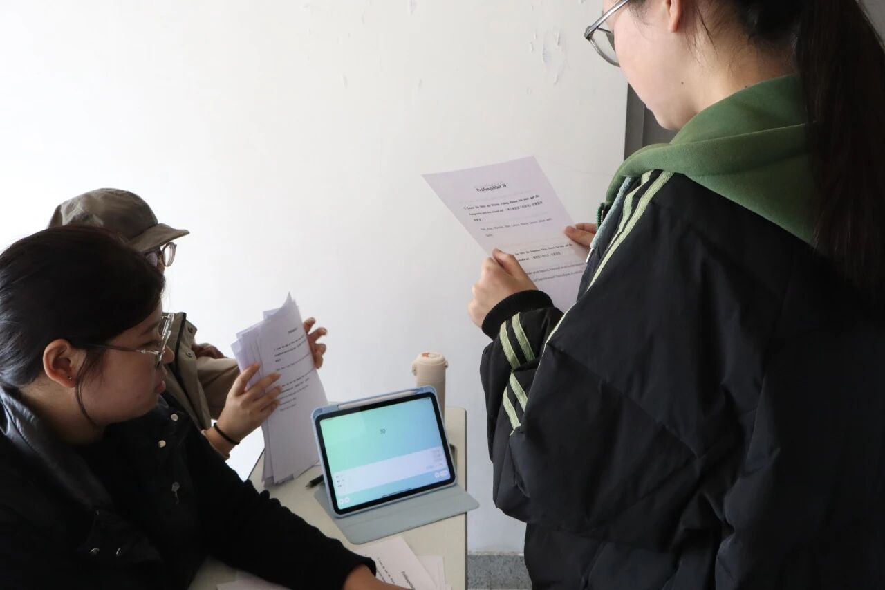 在考试过程中,老师们专注倾听、细致评定,并通过综合评分与平均计算,为每位同学的语音表现作出精准评定。