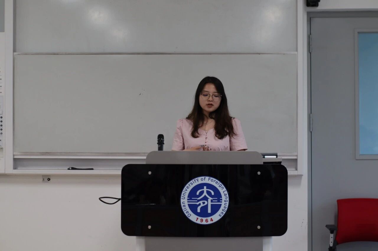 吴洪艺同学以国赛参赛流程为主体,从比赛样题、时间安排、定题演讲分析等方面切入,为同学们提供了详尽的建议。她建议同学们参考往年赛题提前准备,多积累高频词汇与名人名言,重视读写教程的学习。此外,她分享了个人参赛经历,有效缓解了同学们的紧张情绪。她还提醒同学们,演讲时应与评委进行眼神交流,保持自信从容的状态,同时注意发言时间与礼仪规范。最后,她强调同学们需认真学习 “当代中国” 系列教程,注重专有名词的翻译训练。