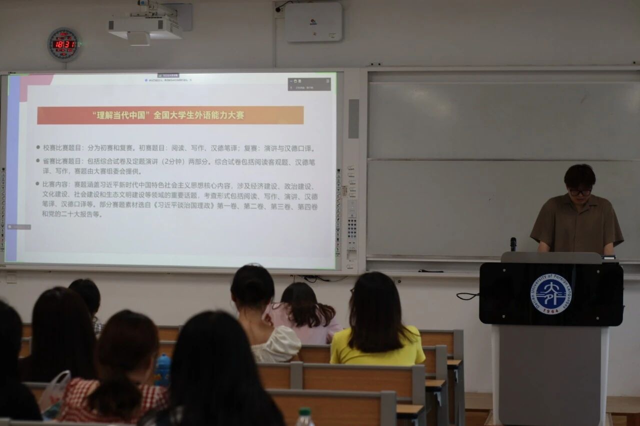 为帮助同学们更好了解比赛的内容和流程,6月11日18时30分,德语学院学风建设部邀请吴洪艺同学、高凯辉同学,于励志楼B区420教室为大家带来比赛经验分享会。